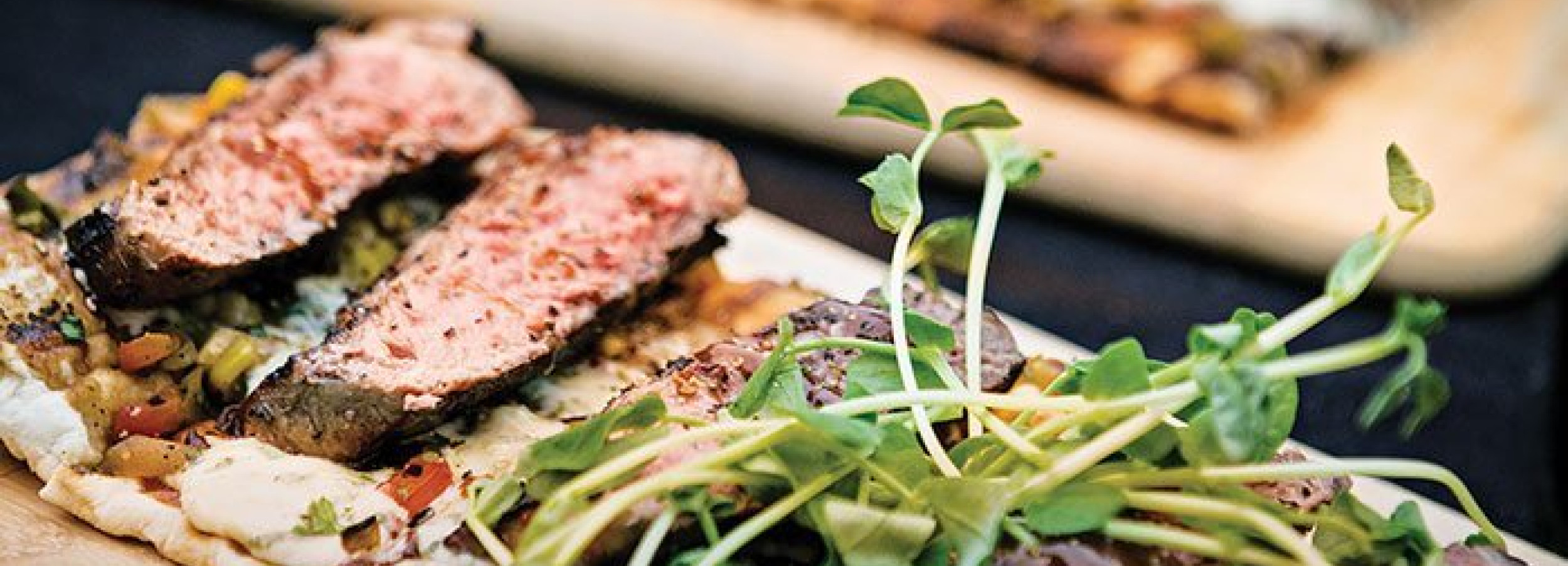 - Top pizza with steak sauce, and grilled-diced vegetables.
