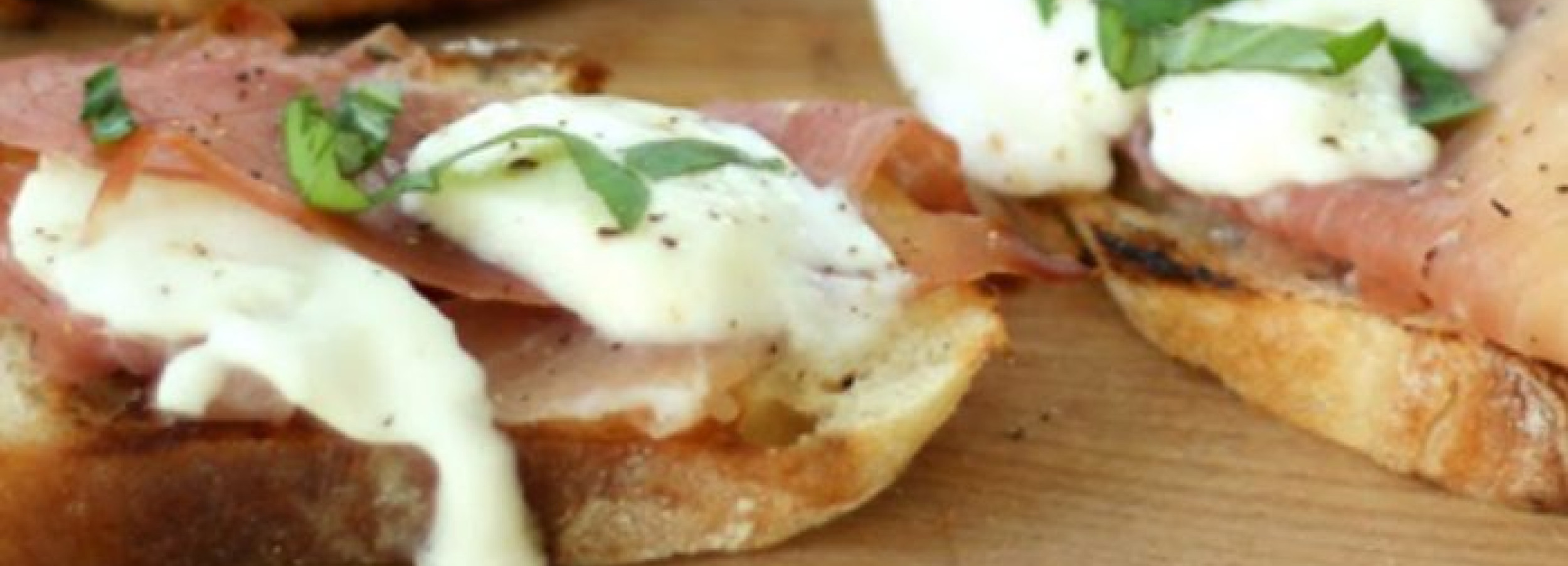Prosciutto & Fresh Mozzarella on Grilled Garlic Toasts