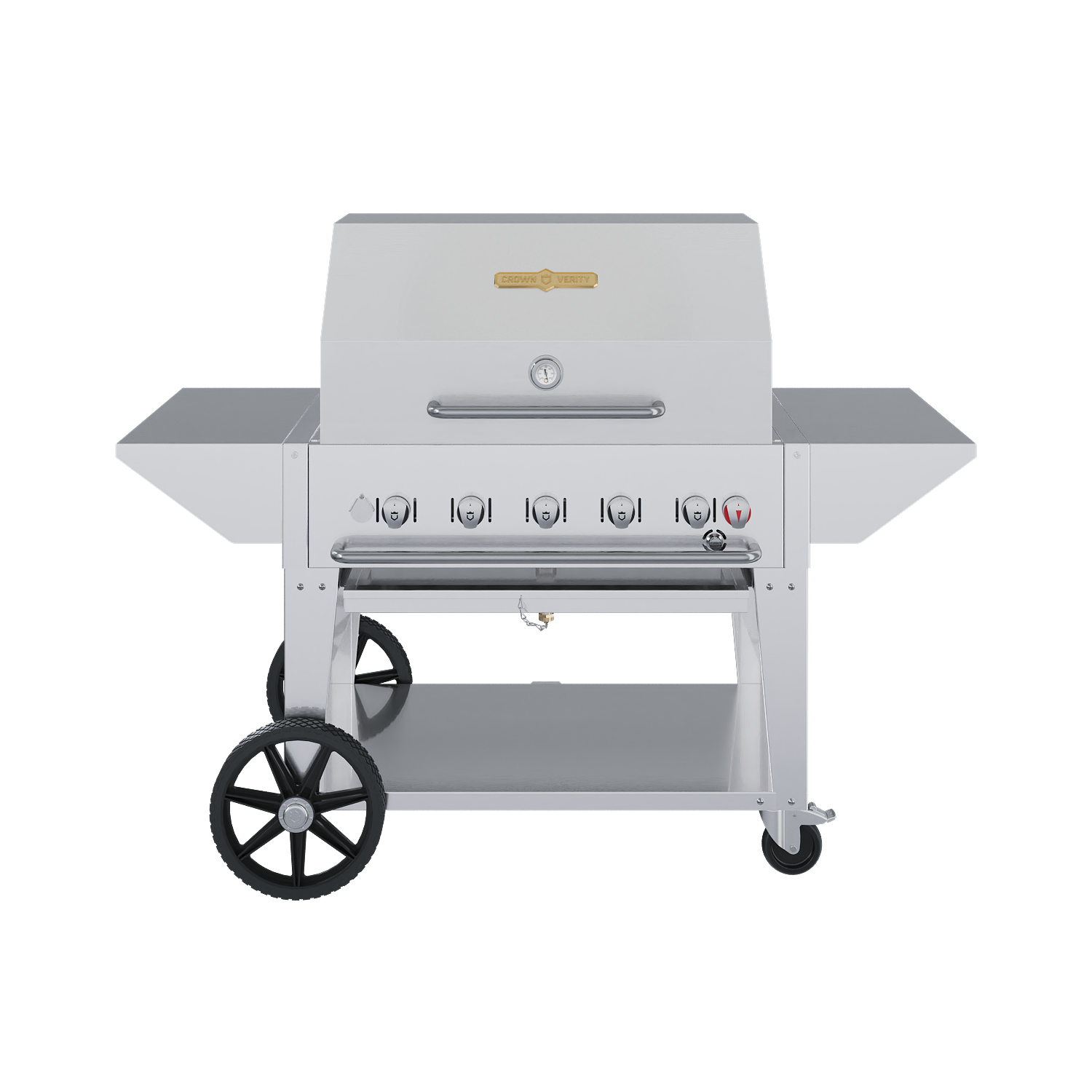 This is our entry model, ideal for the light commercial griller or those with restricted space. It's a great choice for the professional domestic chef. Pictures shown are for illustration purposes only. Actual product may vary due to product enhancement. Includes dome, 2 removable end shelves, adjustable bun rack, and BBQ cover.