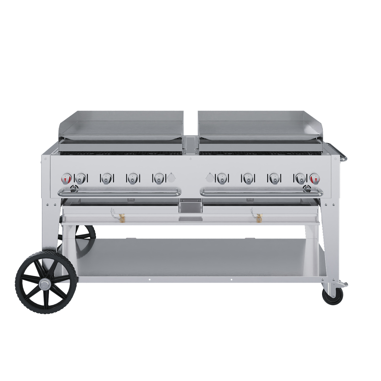 This Mobile Griddle is designed to cook high volumes of product in a short period of time and is built to convert with ease into a Charbroiler for dual function use. Griddles are constructed of 5/16” cold rolled steel with stainless steel splash guards and a removable stainless steel grease tray.