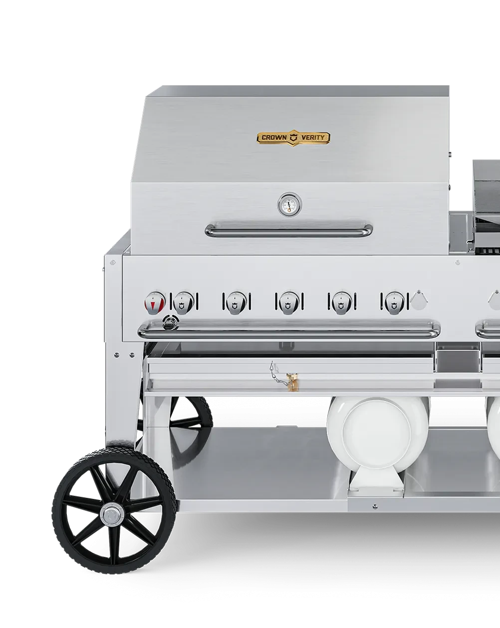 A Crown Verity grill brings versatility to your outdoor offering: you’ll never be limited on which dish to dream up next. With available cooking add-ons such as griddles, rotisseries, and charcoal trays, this grill will truly work for you–no matter what event you’ll need it for. So let your chefs’ imaginations run wild–they’ll have everything they need for any menu right at their fingertips. The time is now–we’re here to help reshape your food and beverage program.